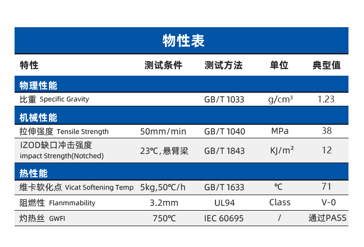 阻燃:阻燃性能優異,符合UL94 V0級